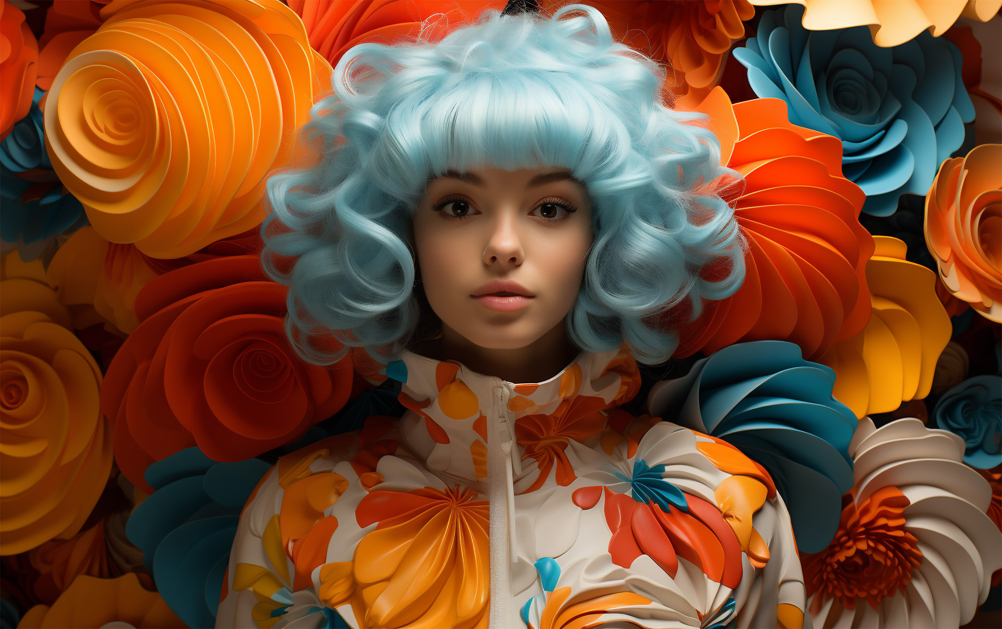 女性・顔・オレンジ色1